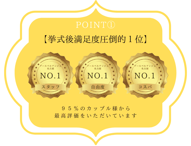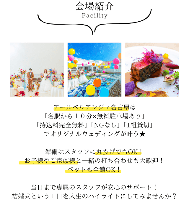 結婚式はお金がかかるからと、式を挙げる事を諦めていました。そんな時にアールベルアンジェ名古屋の「0円ウエディング」を発見しすぐに応募しました。自己負担0円でも私たちもゲストも大満足の結婚式を挙げる事ができました!お料理もとても美味しかったです・・!